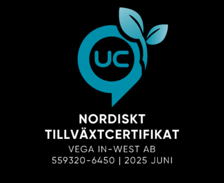- in-West har tilldelats nordiskt tillväxtcertifikat hos UC där endast en minoritet av Sveriges företag kvalificerar sig som tillväxtföretag. Följande parametrar beaktas: Omsättning senaste två åren, tillväxt, antal anställda, soliditet, EBITDA-marginal.